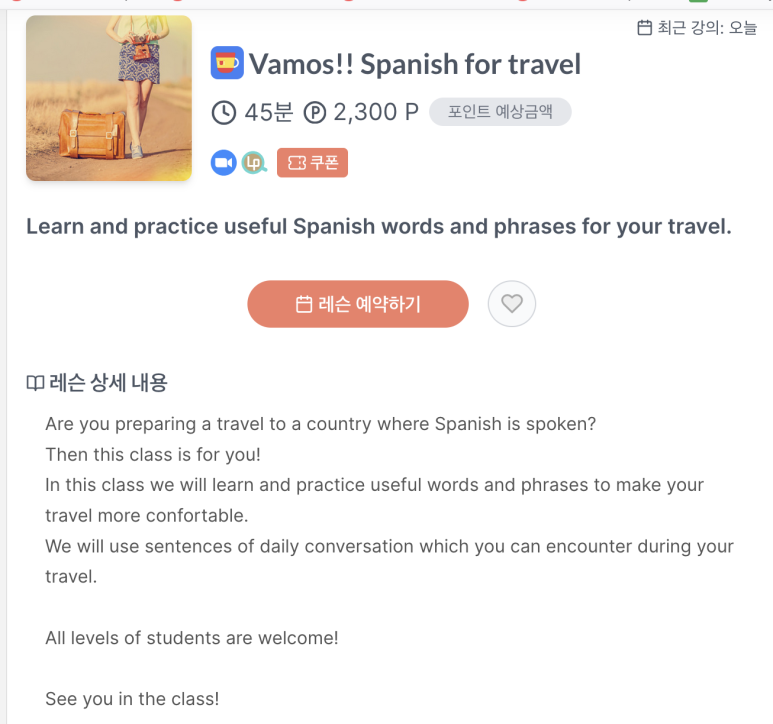 오늘 소개해 드릴 스페인어 레슨은 스페인어 원어민 Esther R 강사의 여행자를 위한 스페인어(Vamos!! Spanish for travel) 레슨입니다.
